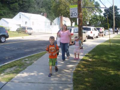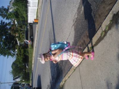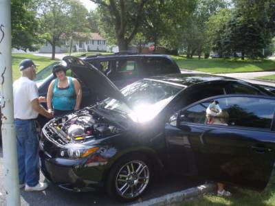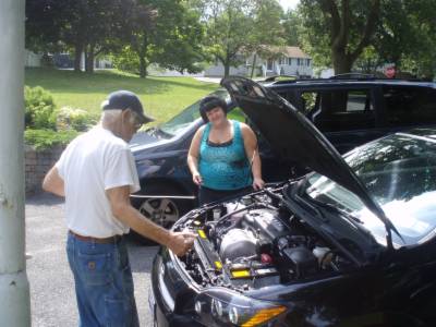 Checking out Danielle's new wheels.