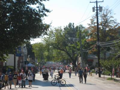 You've gotta park far away and walk along the trolly line to get to Cow Harbor day.