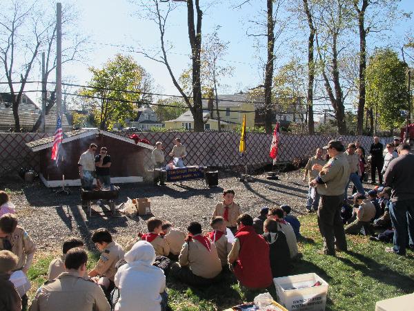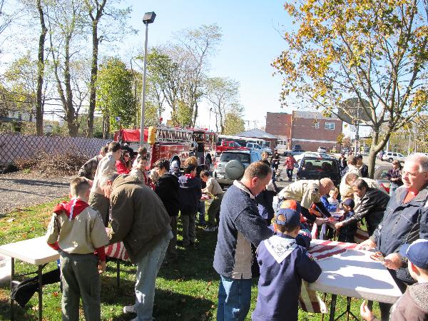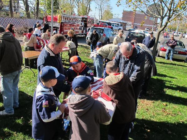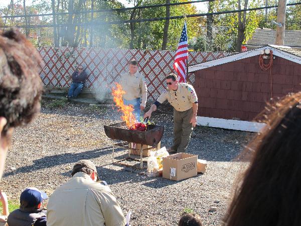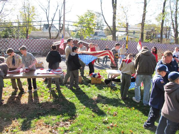 Flag burning day, we cut the worn flag into strips then burn 'em.