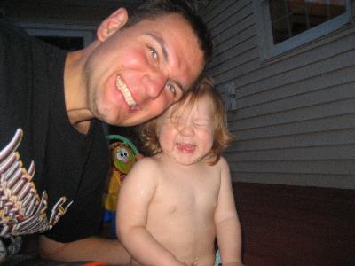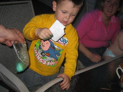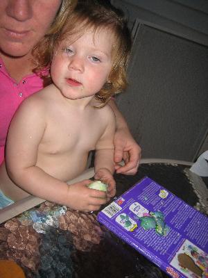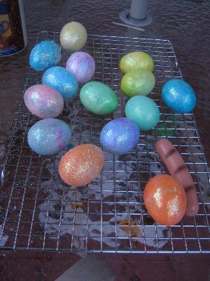 Sean putting sparkles on eggs.