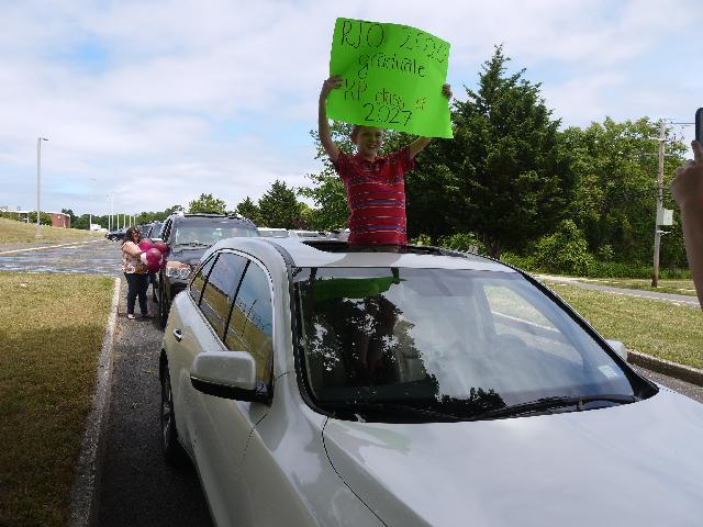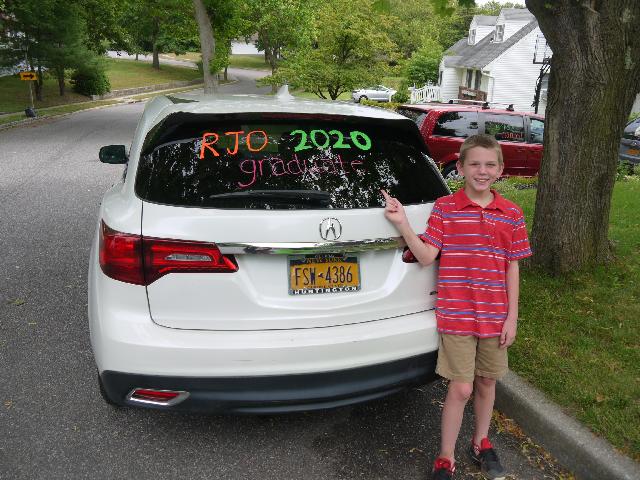 Emmett's online moving up ceremony and drive-by the school