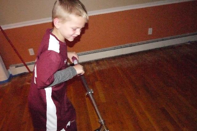 I decided to sand down my wood floors before we left for GWL. Last