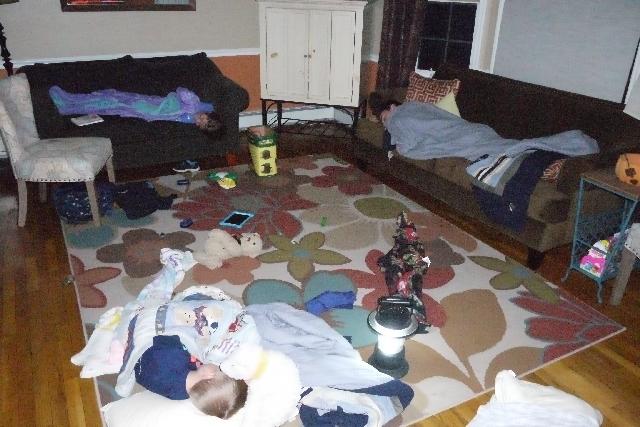 Due to a poor neutral connection from the power company, we experience wild voltage swings up to 200v blowing up electronics in our house. I chose to minimize the damage and shutdown the power. The kids opted to huddle together in the living room.
