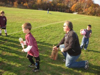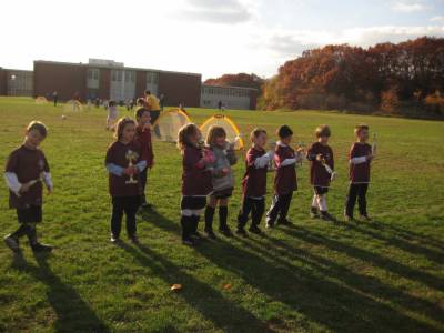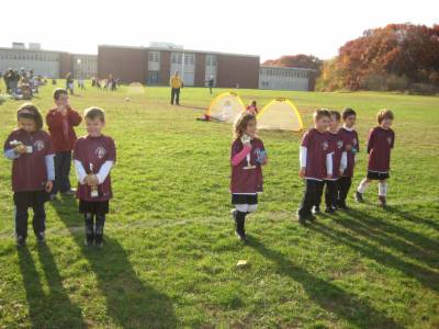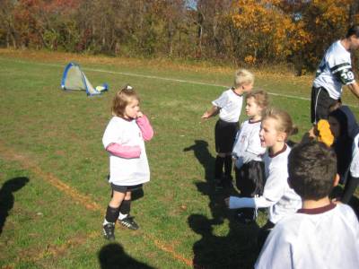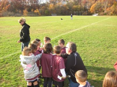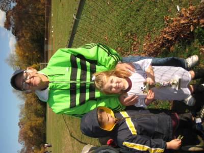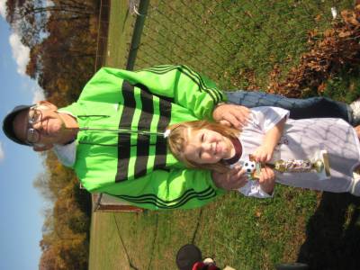 Everyone was happy to get their trophy--Avery scored two goals in her last game.