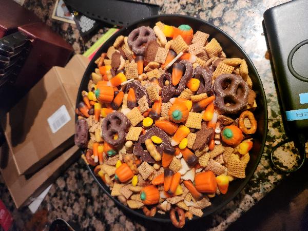 Whipped up some spooky trail mix for Dawn & Eddie's.