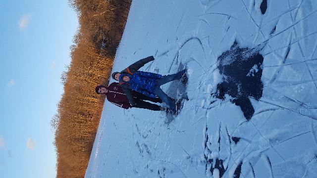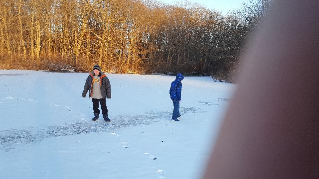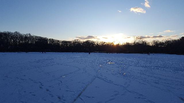 Walking on the ice on the Maple Avenue pond.