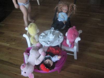 Avery is having a nice little tea party.