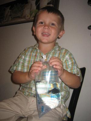 Sean was good in school, so he got a new gold fish.