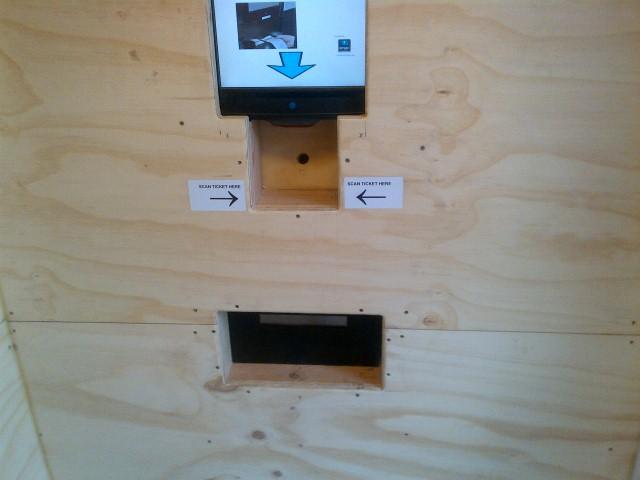 wooden ATM at recycling place