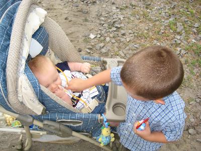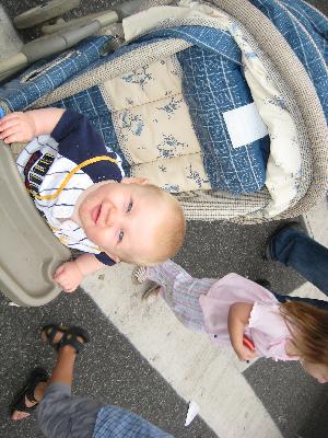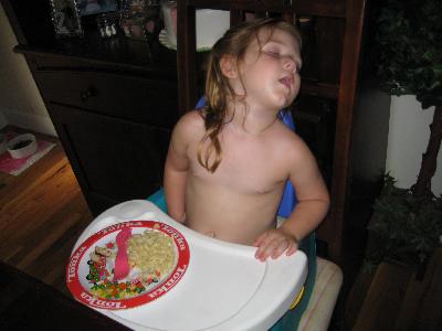 Some unrelated pictures of avery sleeping at dinner and sean pushing charlie