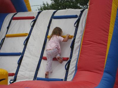 Rock climbing--you have to tip the guy good to get the big kid to the top