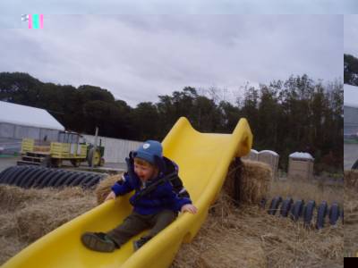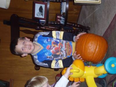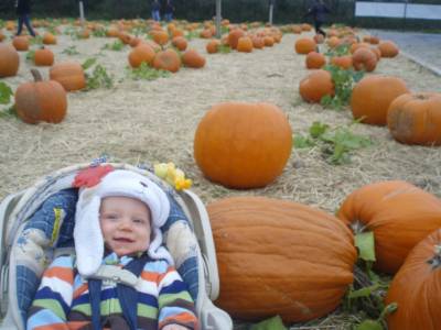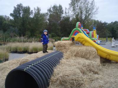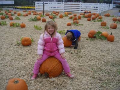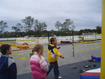It was cold day and we found a "farm" on 25A where the pumpkins were neatly lined up as if aliens had planted them. Anyway, they spent 2 hours on the "halloween" bouncers in the 40 degree weather. And it rocked!