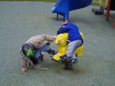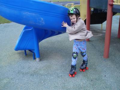 Kids testing their new roller skates