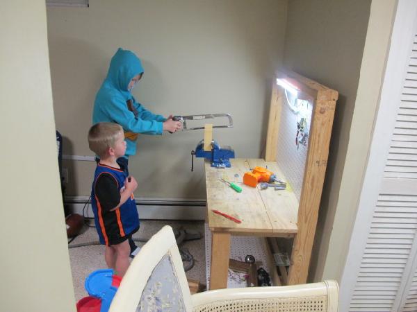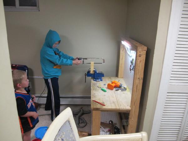 Sean making his pinewood racecar