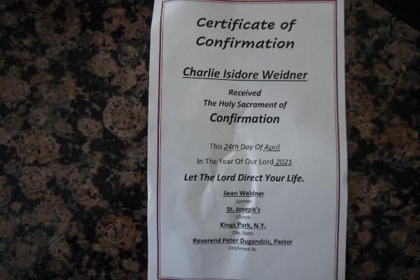 Charlie Isidore Weidner's confirmation and Sean's acceptance to Pitt