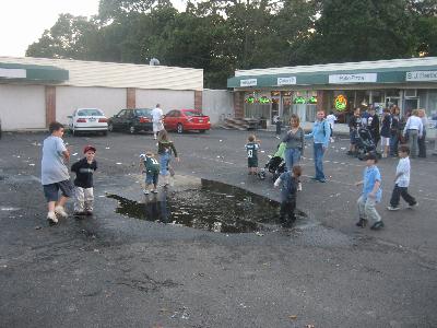 Kids playing in puddles; it's what it's all about.